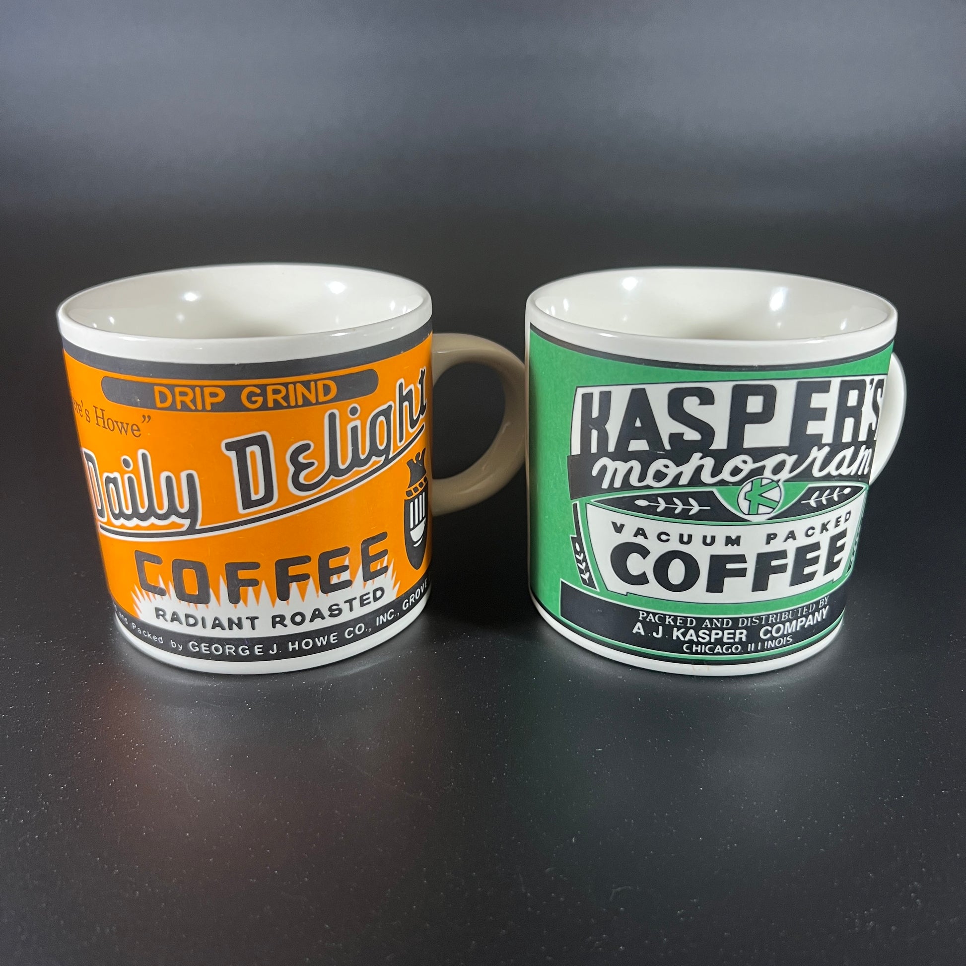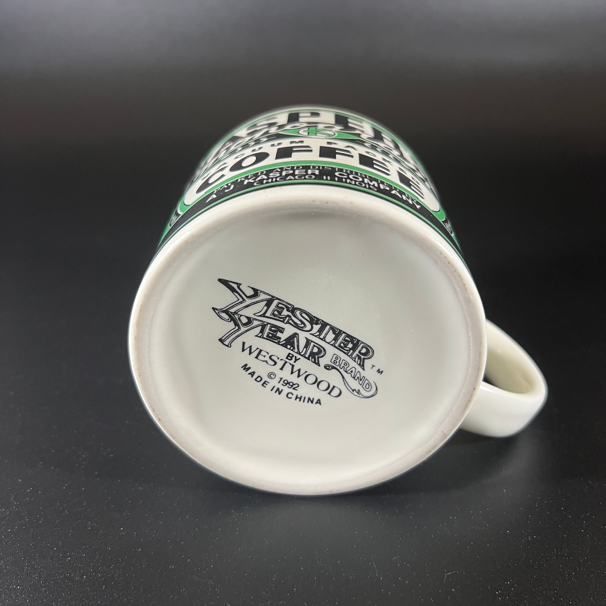 This Yesteryear Brand by Westwood retro coffee mug set showcases vintage coffee brands, making it a charming addition to any collection. The mugs are in good vintage condition, though one handle has a hard to see chip (see photos). Dimensions: 5" W (with handle) x 5" H, with a 3.5" diameter. A nostalgic set perfect for coffee lovers or retro enthusiasts!