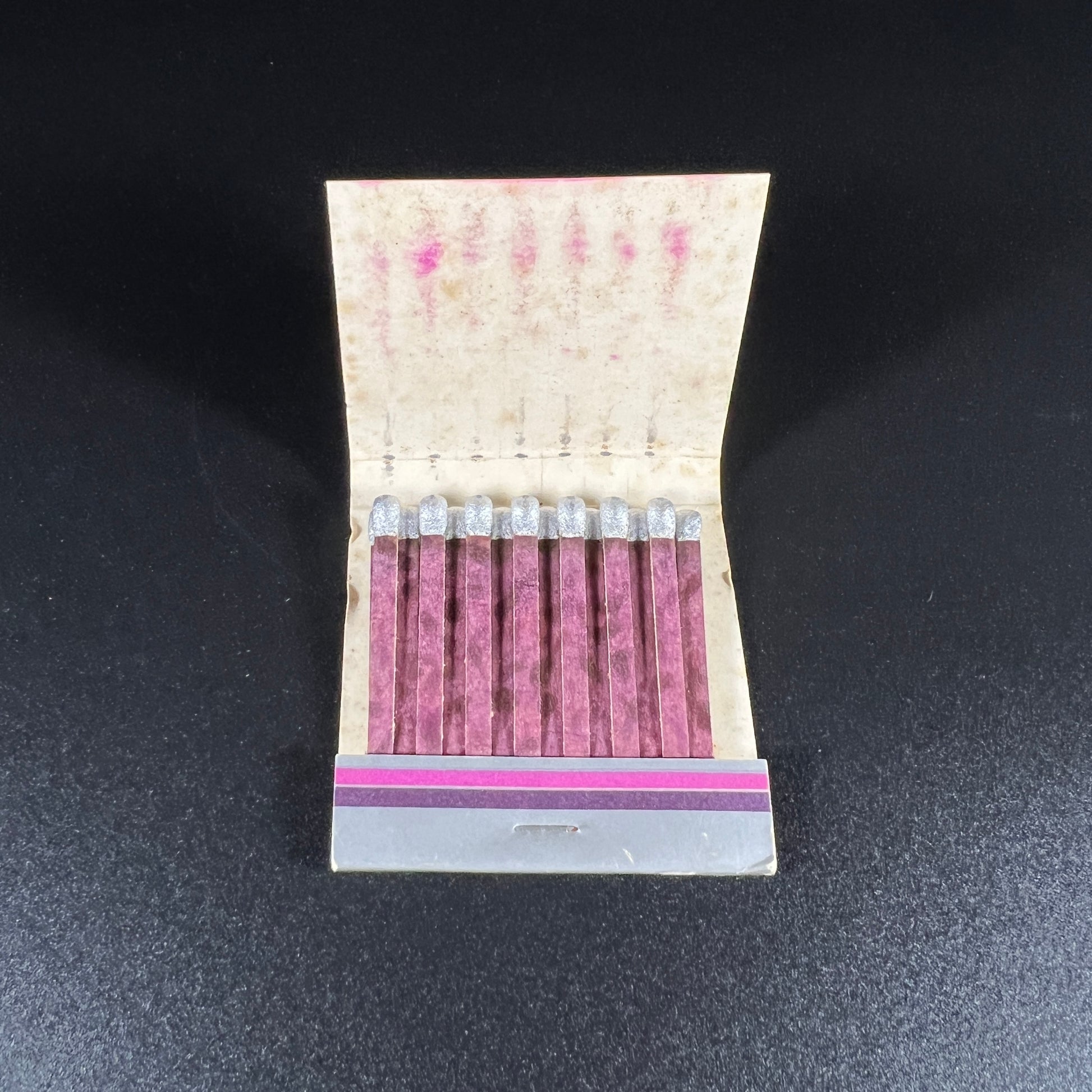 This vintage 1970s Walt Disney World ashtray, measuring approximately 5 inches across, was made in the USA for Walt Disney Productions. It features a vibrant design with Cinderella Castle and the iconic Walt Disney World logo in retro 70s colors of yellow, orange, and red—perfect for Disney collectors or fans of vintage memorabilia. Also included is a vintage 1980s unstruck matchbook from Walt Disney World's Epcot Center, featuring a silver, pink, and purple back strike. The matchbook may show signs of wear, discoloration, and softening or cracking of the cardboard due to age, adding to its nostalgic charm.