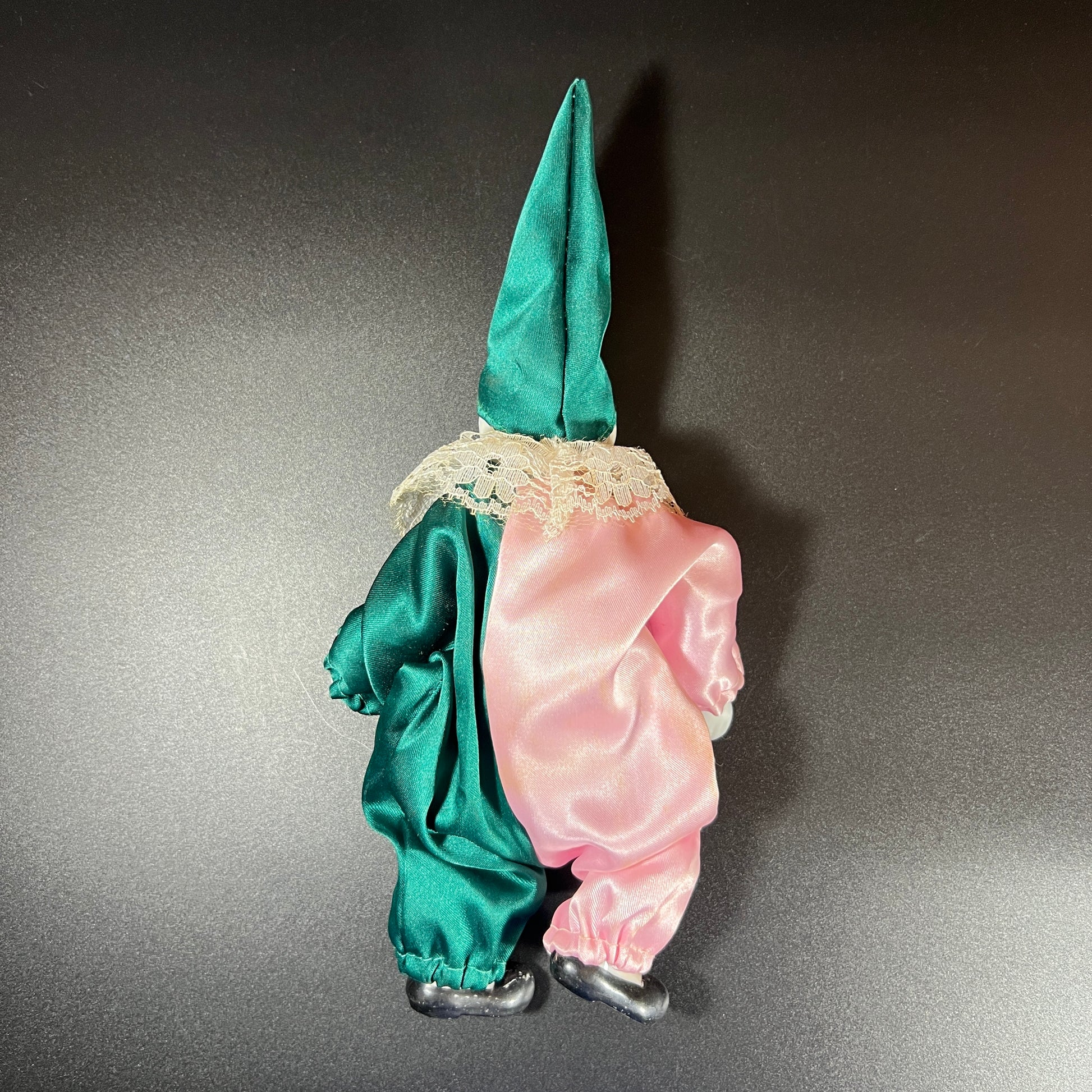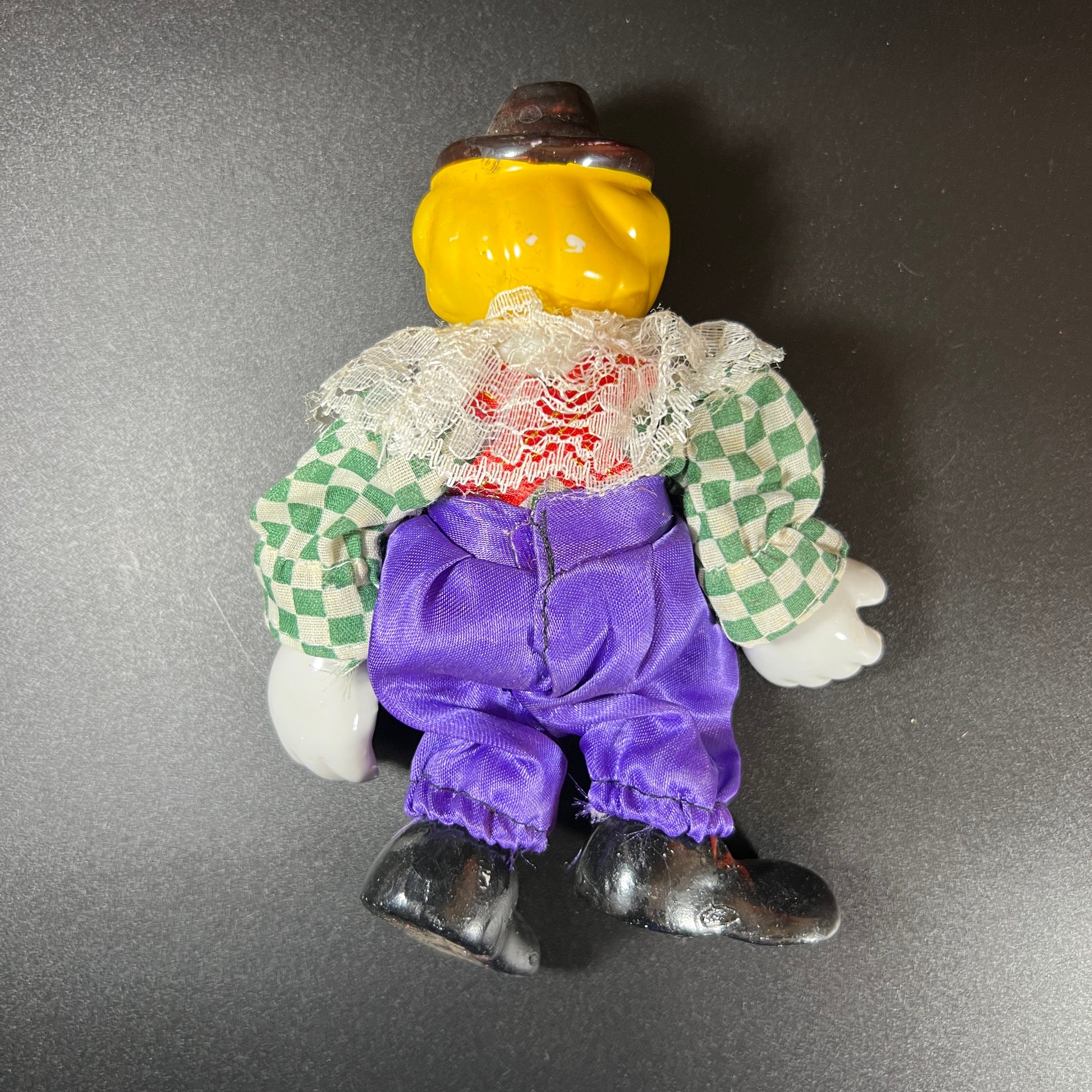 Add a touch of vintage charm and playful nostalgia to your collection with this enchanting set of 4 vintage clown dolls. Each doll features a delicately crafted porcelain head, hands, and feet, showcasing fine details and expressive, hand-painted faces full of personality.