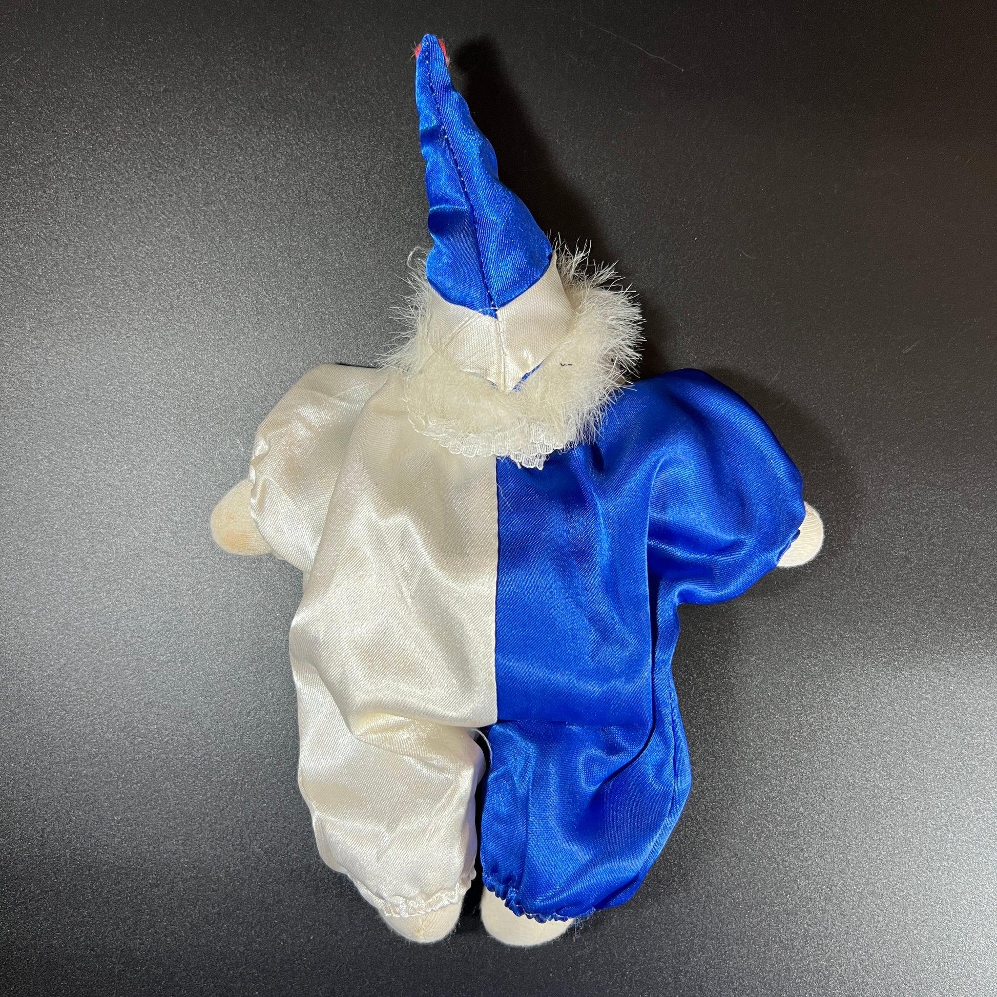 Add a touch of nostalgic charm to your collection with this delightful set of five vintage sandbag clown dolls. Each stands approximately 6 inches tall and features a delicately crafted porcelain head with expressive, hand-painted faces full of personality and old-world character. Their soft, weighted bodies allow them to sit or pose, making them perfect for display on shelves, in curio cabinets, or as part of a vintage toy collection.