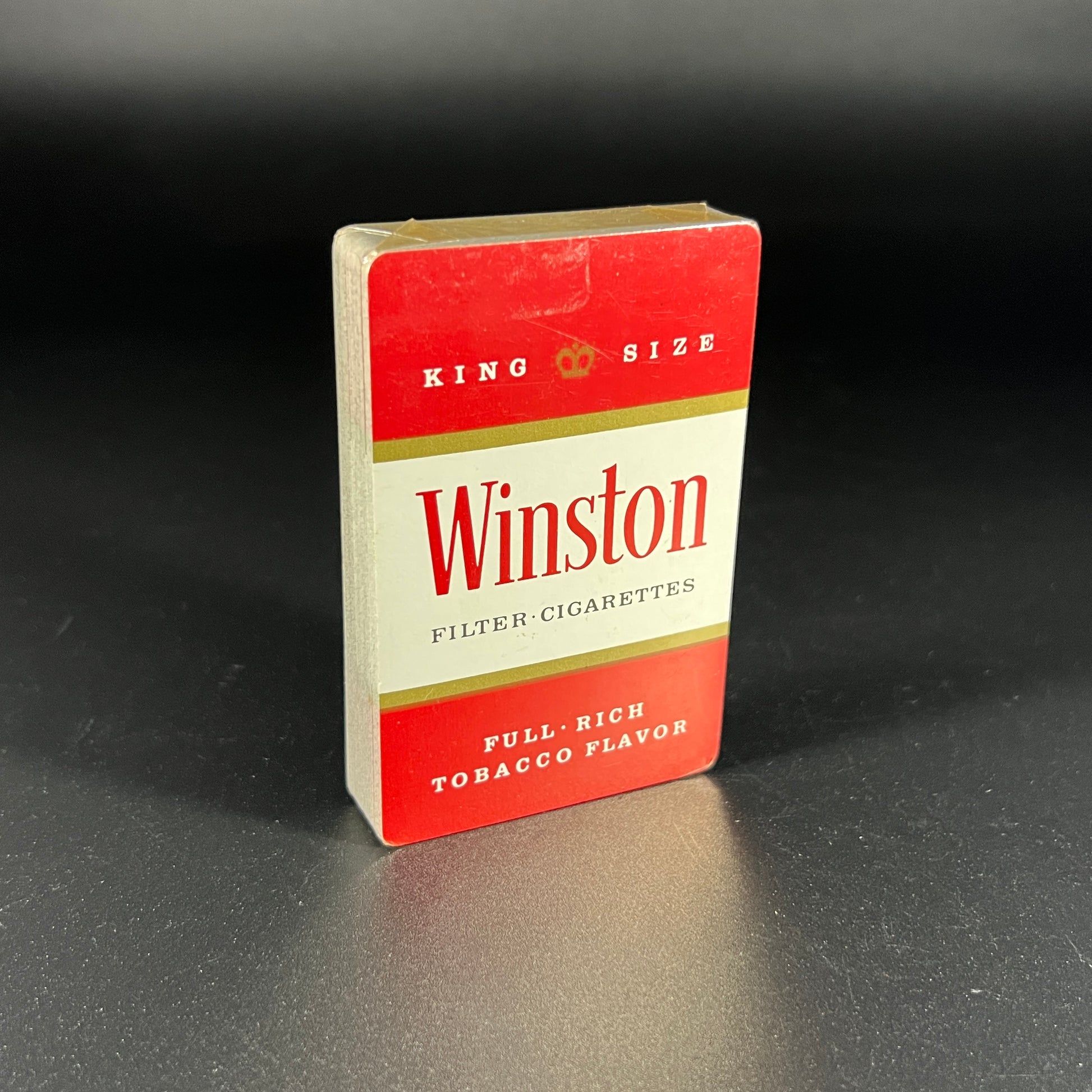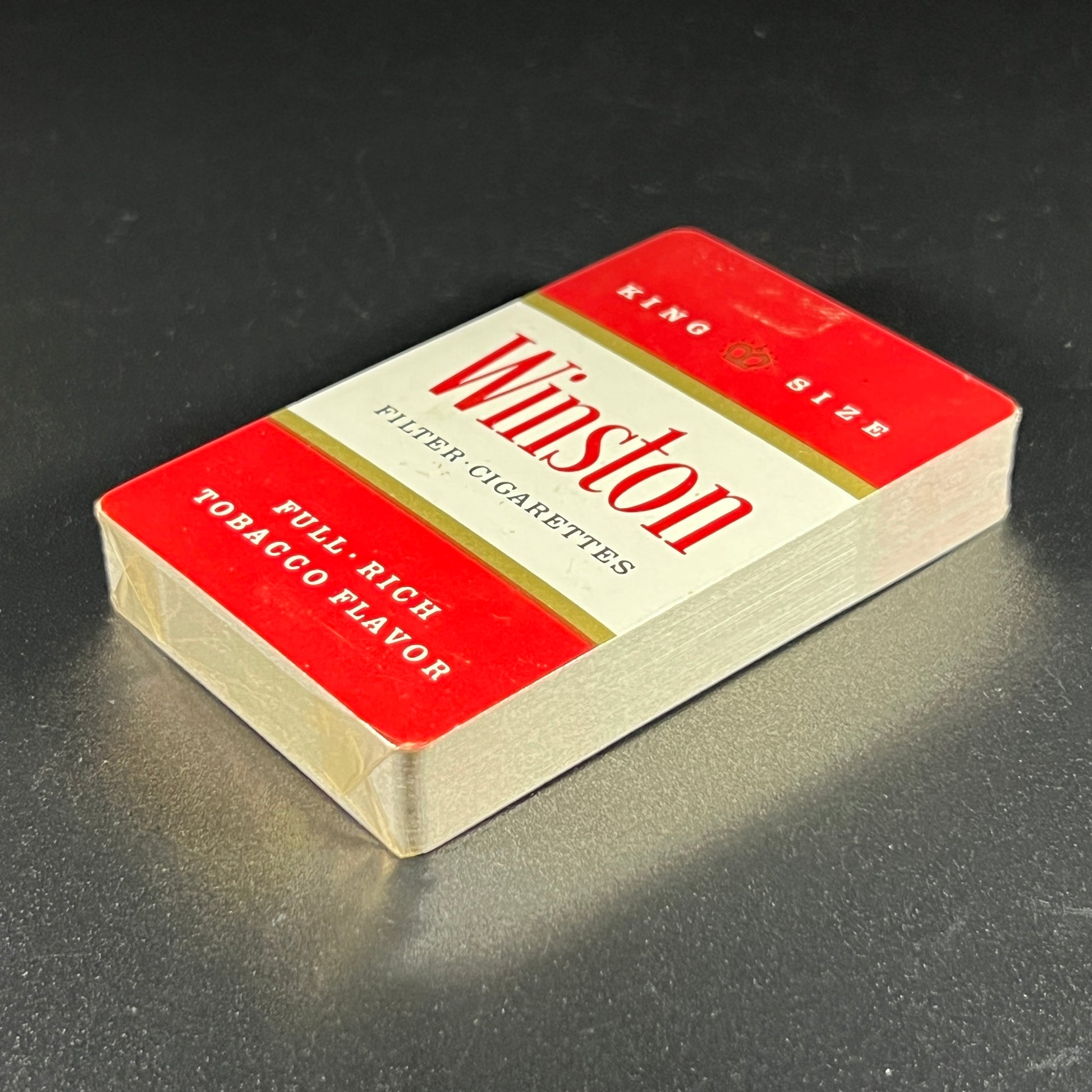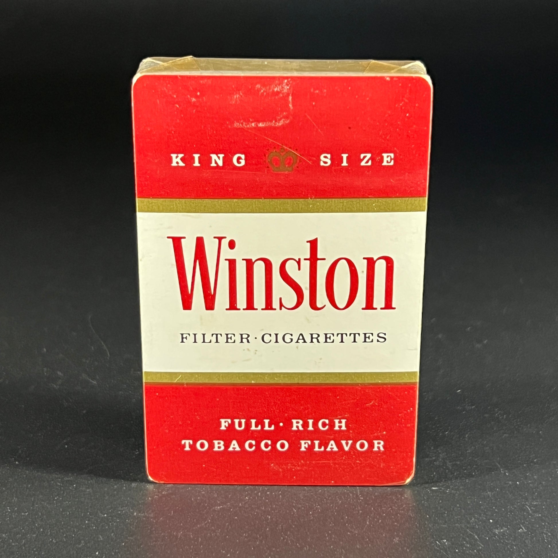 This unopened vintage deck of playing cards features the iconic Winston brand, long associated with high-quality tobacco products. Produced by the R.J. Reynolds Tobacco Company, this deck is a distinctive piece of advertising history and a great addition to any collection. It’s in excellent condition and appears to be a standard-size deck—ideal for collectors or anyone who appreciates unique and nostalgic Americana.