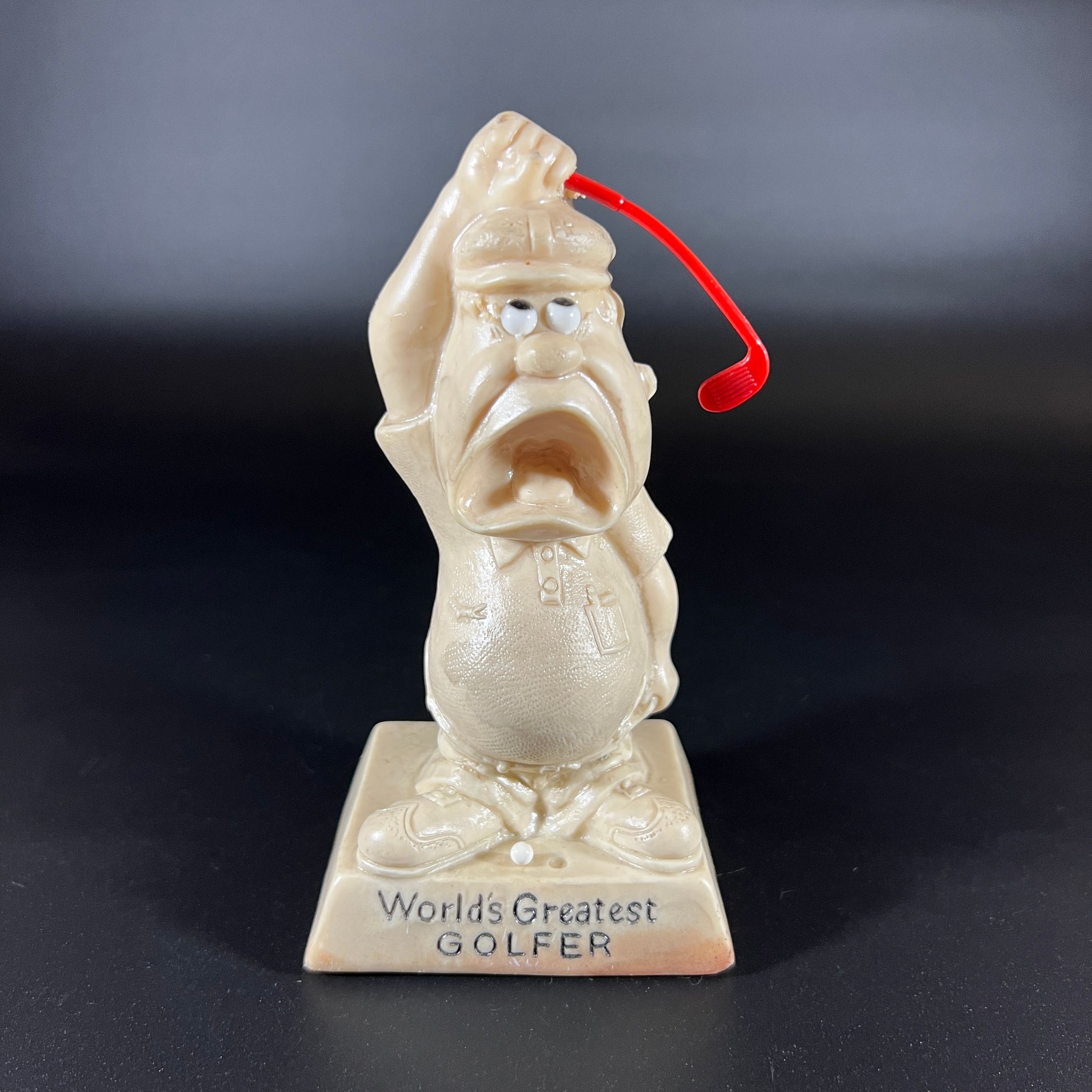 This "World's Greatest Golfer" novelty trophy (#769) from W & R Berries Co. dates back to 1970. This is the perfect gag gift for your vintage loving golfer. Known for their charming, humorous, and occasionally risque figures, R & W Berries created these fun collectibles in the '70s. The trophy is in good vintage condition, showing wear typical for its age. Please refer to the photos for more details. It measures approximately 6.5" H x 3.35" W x 3" D.